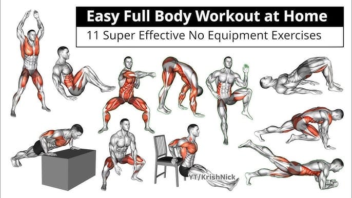 A full body workout at home can be simple and effective. No equipment needed. Just your body and some motivation. You save time and money. Perfect for busy days. Exercise boosts energy and mood. Builds strength and flexibility. Start with basics like squats and push-ups.
