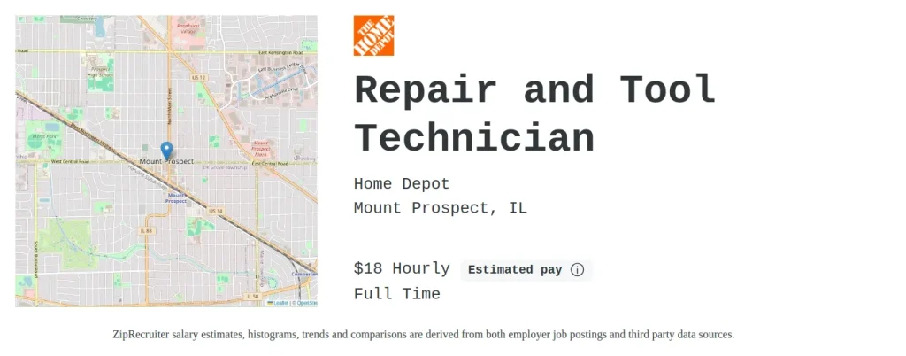 Home Depot repair and tool technicians earn fair pay for their skills. Wages vary by location and experience. Benefits often include discounts and insurance. Many enjoy steady work and learning opportunities. Choosing this job means steady income and hands-on tasks.