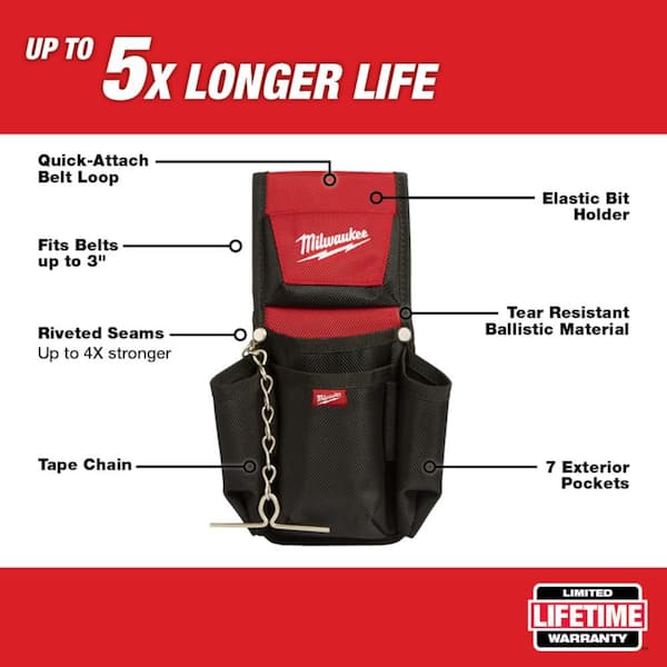 • Milwaukee Multi-Compartment Pouch:Multiple pockets and sleeves designed for specific tools like screwdrivers and pliers.