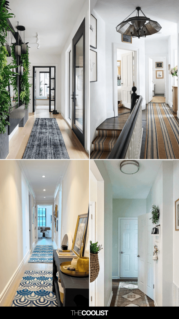 Use mirrors to create the illusion of space. Hang art pieces vertically for added height. Install wall-mounted shelves for decor and storage. Opt for light-colored paint to brighten the area. Use wallpaper with vertical stripes to elongate the hallway.